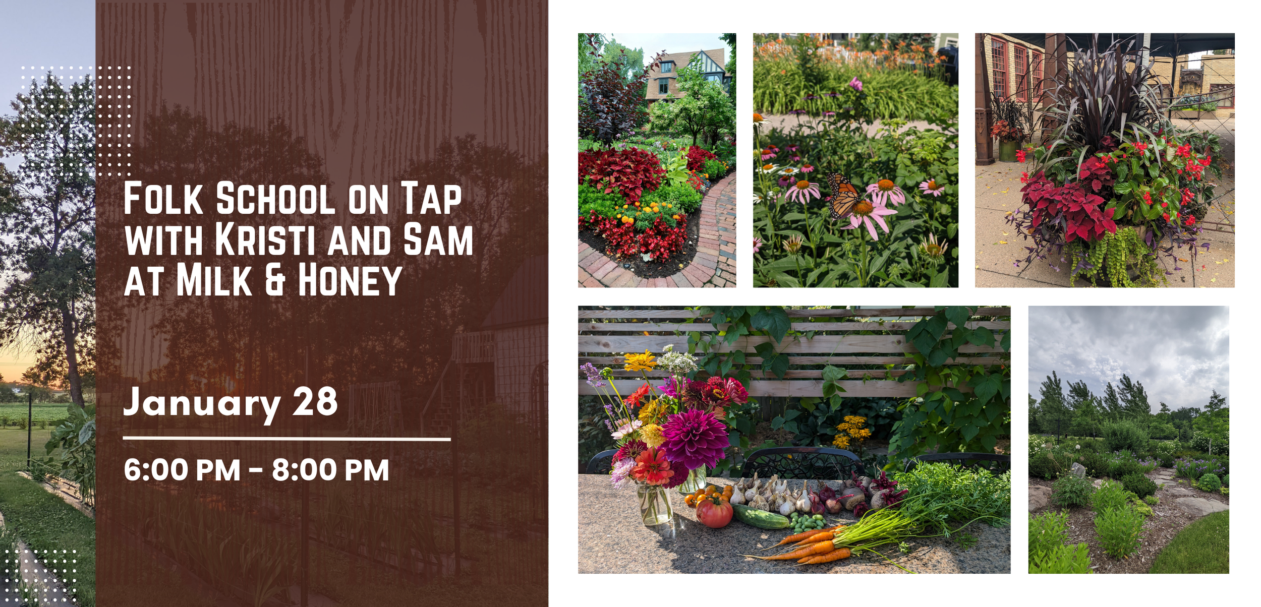 No need for a green thumb, there will be something for everyone whether an eager beginner or established farmer. Learn about the 2026 Folk School Garden Series and get excited about getting your hands dirty! Sip a cider and bring your gardening questions for real time answers, discussion and growing community! Kristi and Sam are happy to discuss a wide range of topics, like: vegetables, annual flowers, perennial flowers, natives, soil, design, and more.